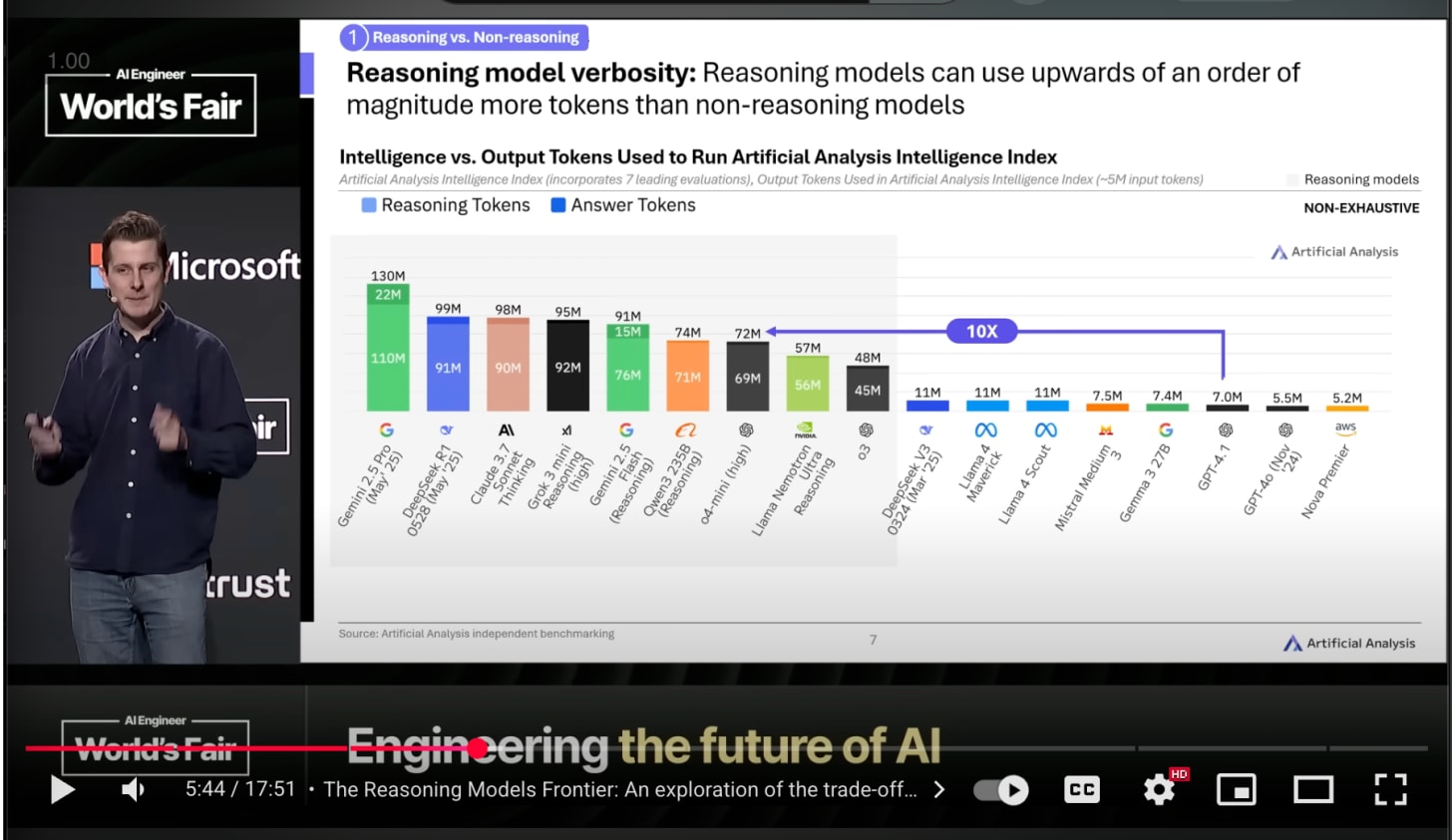 One of the dirtiest secrets in the industry is that “price per token” is less and less of a a relevant metric, because reasoning models can often use >10x more tokens to answer questions, especially if they are opaque from you: